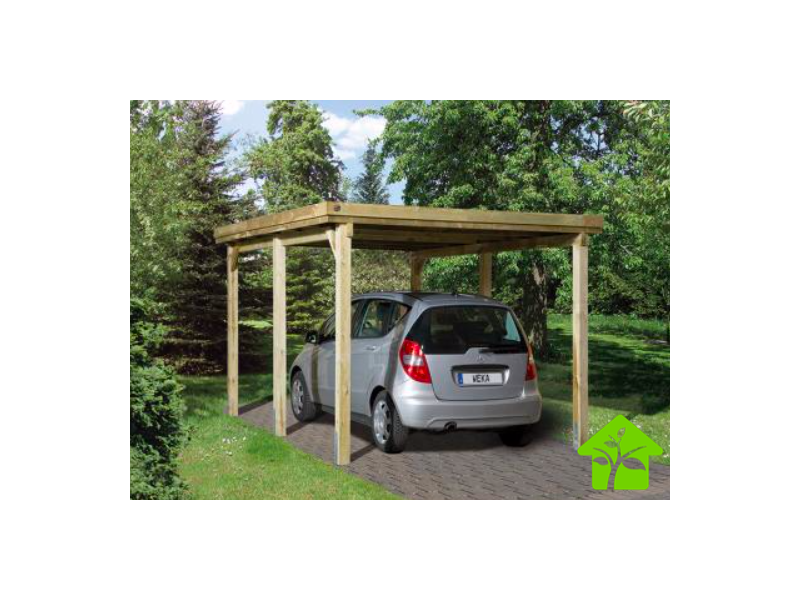 Carport simple de 11,7 m2 pour voiture avec couverture de toit plat en PVC, taille 1. Dimensions : 294 x 398 x H 233 cm