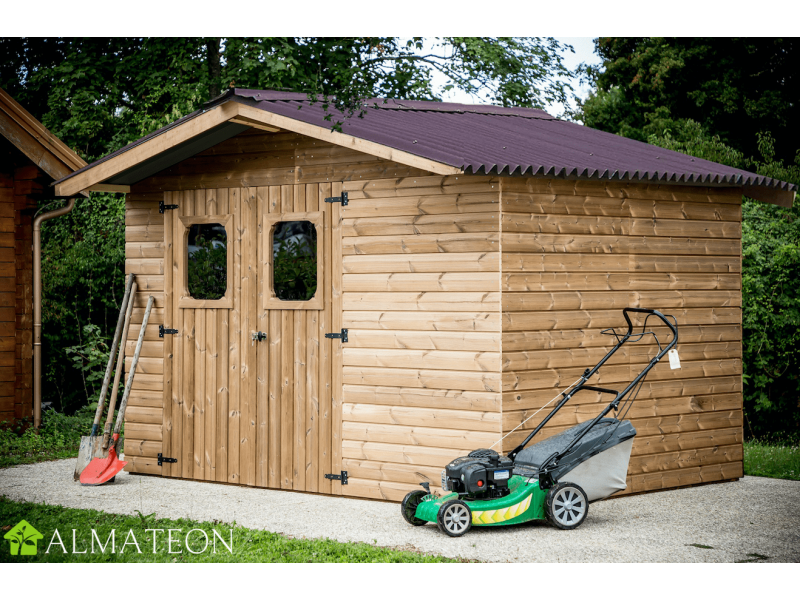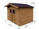 Ses dimensions extérieures au sol proposent une largeur de 316 cm pour une profondeur de 240 cm. La hauteur de la paroi est de 182 cm et celle du faitage de 235 cm.La surface utile à l'intérieur est de 7,25 m² , ce qui permet d'entrposer de nombreux équipements.
