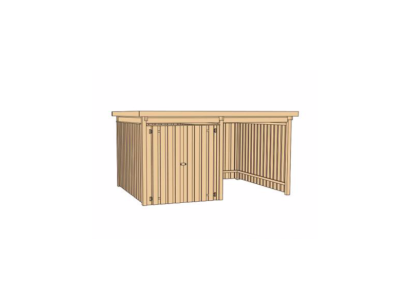 Resserre 607 brut de 11m2 modèle 2, dimensions : 389 x 288 x 214 cm, avec paroi arrière et latérale