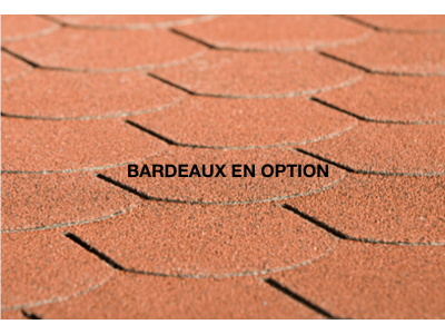 Le toit en croupe en bois massif est livré avec une couverture en bitume pour première couverture permettant de protéger votre abri de l'humidité. Afin de le rendre complétement étanche, nous vous conseillons d'installer une deuxième couverture, en bardeaux de couleur rouge, anthracite ou vert vintage (vendus en option).