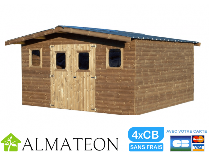 Ses dimensions extérieures au sol proposent une largeur de 400 cm pour une profondeur de 400 cm. La hauteur de la paroi est de 205 cm et celle du faitage de 233 cm. La surface utile à l'intérieur est de 15.52 m² , ce qui permet d'entreposer de nombreux équipements.