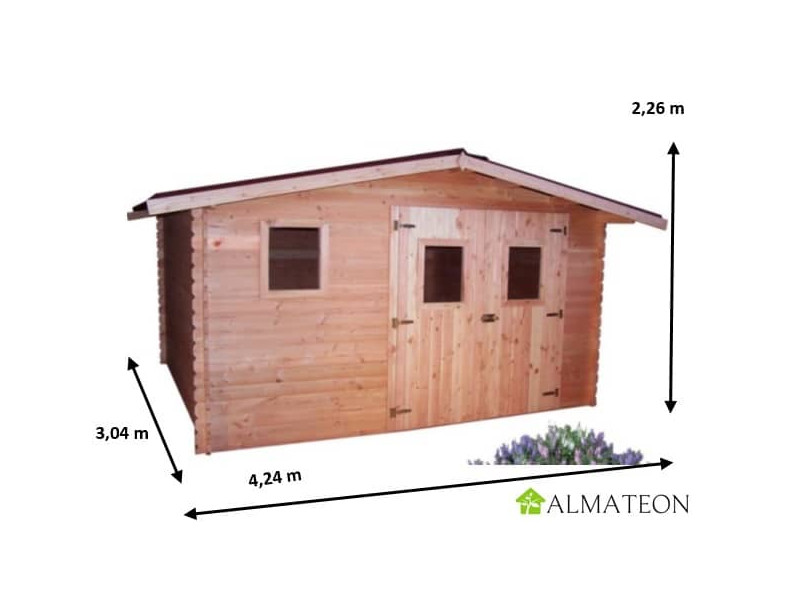 Ses dimensions extérieures au sol proposent une largeur de 400 cm pour une profondeur de 300 cm. La hauteur de paroi est de 176 cm et celui de faitage est de 226 cm. La surface utile à l'intérieur est de 10,64 m², ce qui permet d'entreposer de nombreux équipements.