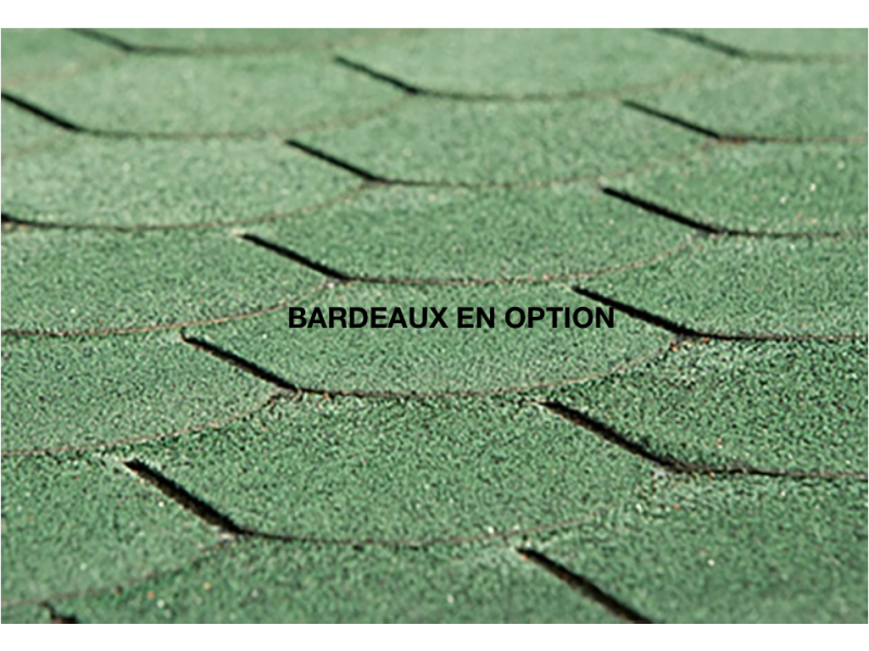 IMPORTANT : bardeaux en formats rectangulaires / écailles, (coloris : anthracite, rouge ou vert vintage)  / gouttières / appentis / volets et jardinières, disponibles en option via la catégorie "accessoires"