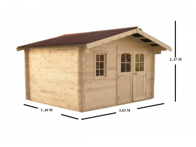Ses dimensions extérieures au sol proposent une largeur de 350 cm pour une profondeur de 300 cm. La hauteur de la paroi est de 199 cm et celle du faitage de 247 cm.La surface utile à l'intérieur est de 8,70 m² , ce qui permet d'entrposer de nombreux équipements.