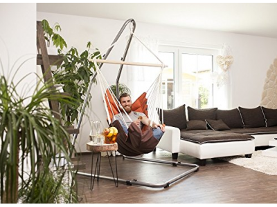 Qui veut une place fixe pour son fauteuil suspendu AMAZONAS dans le jardin indépendamment des arbres, ou dans le salon, indépendamment du plafond ou des murs, peut le suspendre au stable et élégant support Luna. Ainsi, on peut se balancer et rêver dans un coin confortable.