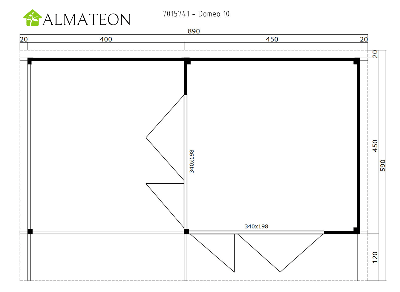 L'abri Domeo 10 vous permettra de profiter d’une véritable pièce de vie supplémentaire qui, en plus d’être agréable et fonctionnelle, se montrera très lumineuse. Il est en effet doté de deux doubles portes pliantes 340,0 x 198,0 cm.