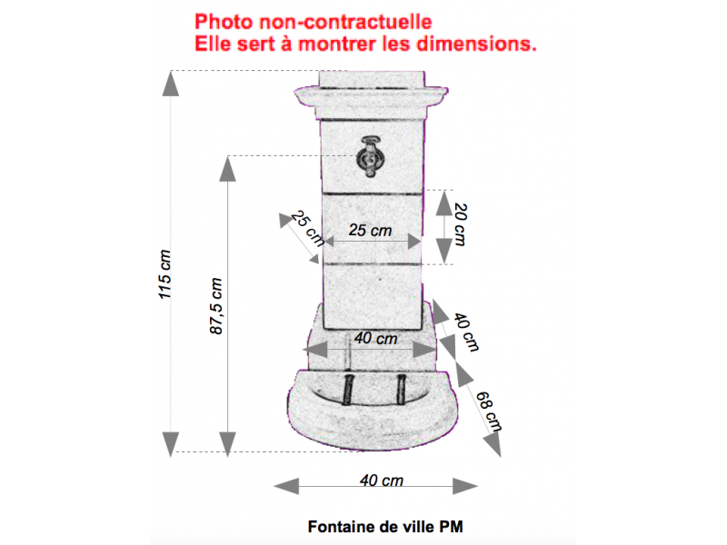 Cette fontaine arbore un style classique tout en élégance. La pierre reconstituée est ici magnifiée par une finition vieillie pour plus d'authenticité. Très pratique la forme de cette borne vous offrira une grande liberté quant au choix du lieu de son installation.