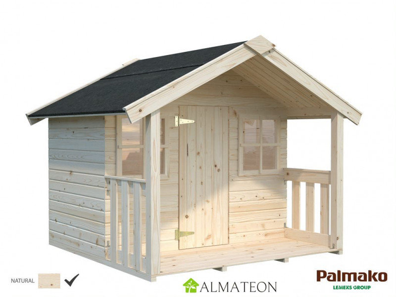 PROMO Maisonnette de jeu avec terrasse 180 x 112 x 180 cm FELIX finition bois naturel PALMAKO