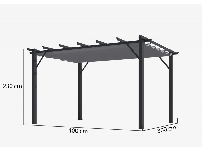 FORESTA vous offre votre nouvel espace de détente chamarré à protection modulable. Devenu expert dans la création de structures robustes, esthétiques, modernes et légères, s'intégrant dans un jardin traditionnel, une terrasse, près d'une piscine ou dans une cour, FORESTA vous présente sa nouvelle pergola 100 % aluminium (sauf croisillons et piètements) PER 4030 GN, à sa marque HABRITA, autoportante, composée de 4 montants robustes équipés de 2 pannes latérales, surmontées de 7 lambourdes armées d'un système de tringle à rails central et latéral pour haler la toile en polyester de 280 gr/m2 au gré de vos désirs d'ensoleillement.