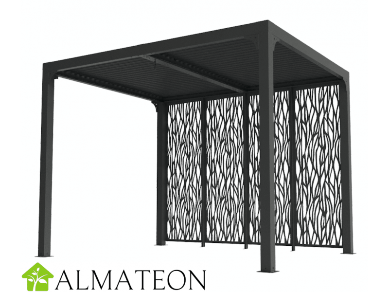 Autoportante, composée de 4 montants robustes équipés de 2 pannes latérales et de 2 pannes frontales, surmontées de 52 ventelles armées d'un système d'ouverture et de fermeture à manivelle qui quidera votre ensoleillement au gré de vos désirs. Sa ligne épurée, ses montants de 10x10 cm, sa structure aluminium thermolaqué, son design soigné, offrent un esthétisme contemporain qui se marie à tout type d'habitat.