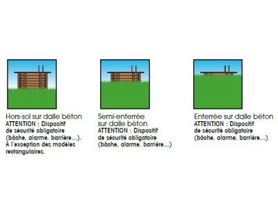- Un dispositif de sécurité obligatoire pour les enfants (par ex. bâche, dispositifs d’alarme, fermeture) !