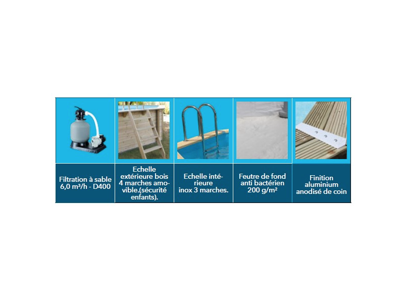 Les équipements inclus dans la piscine AZURA 400 x 610 sont :