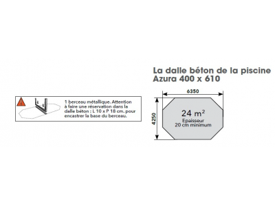 Attention : le montage de la piscine se fait obligatoirement sur une dalle de béton parfaitement plane et de niveau d'une épaisseur de 20 cm minimum, pour garantir la stabilité de votre structure et valider la garantie.